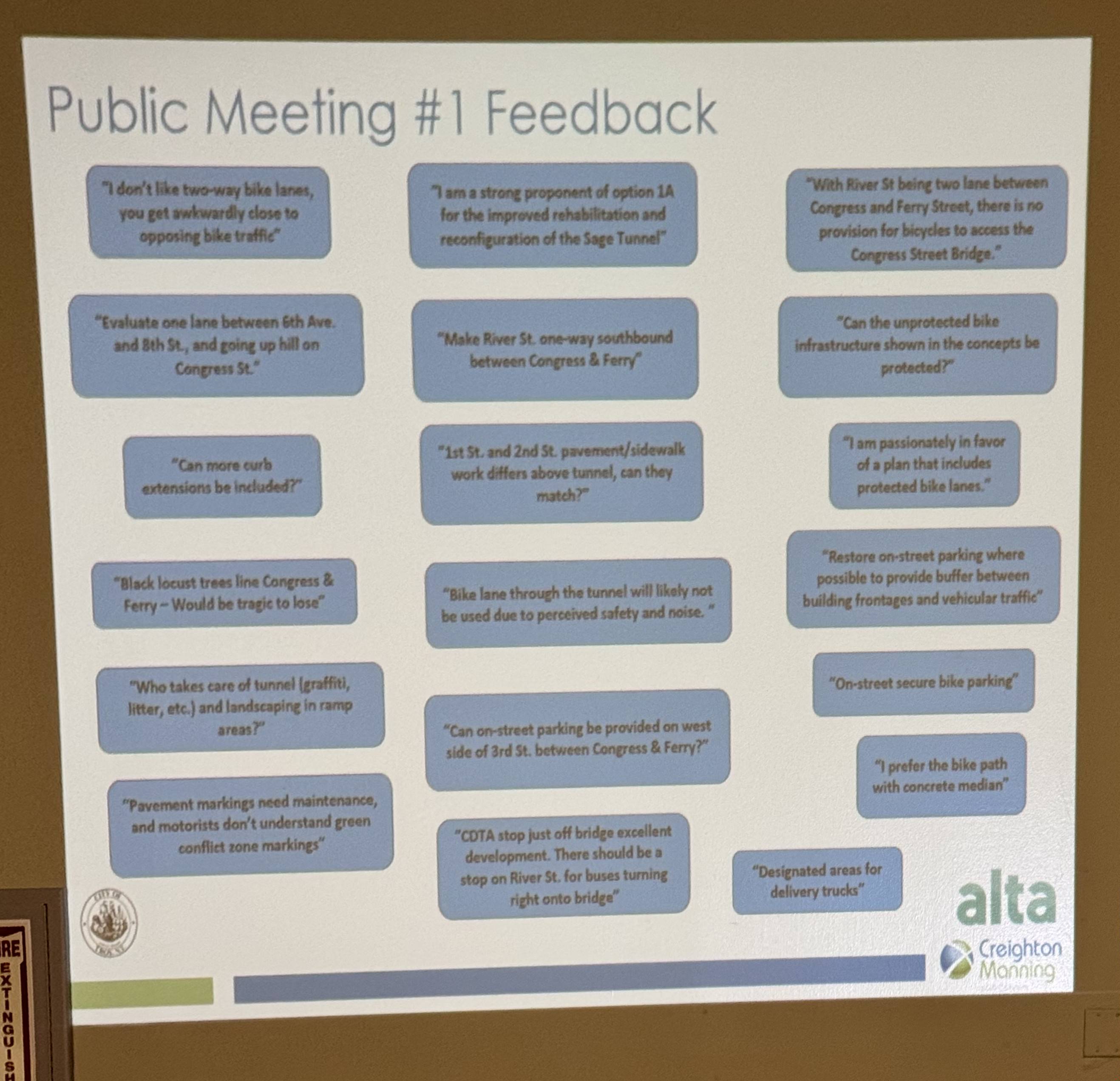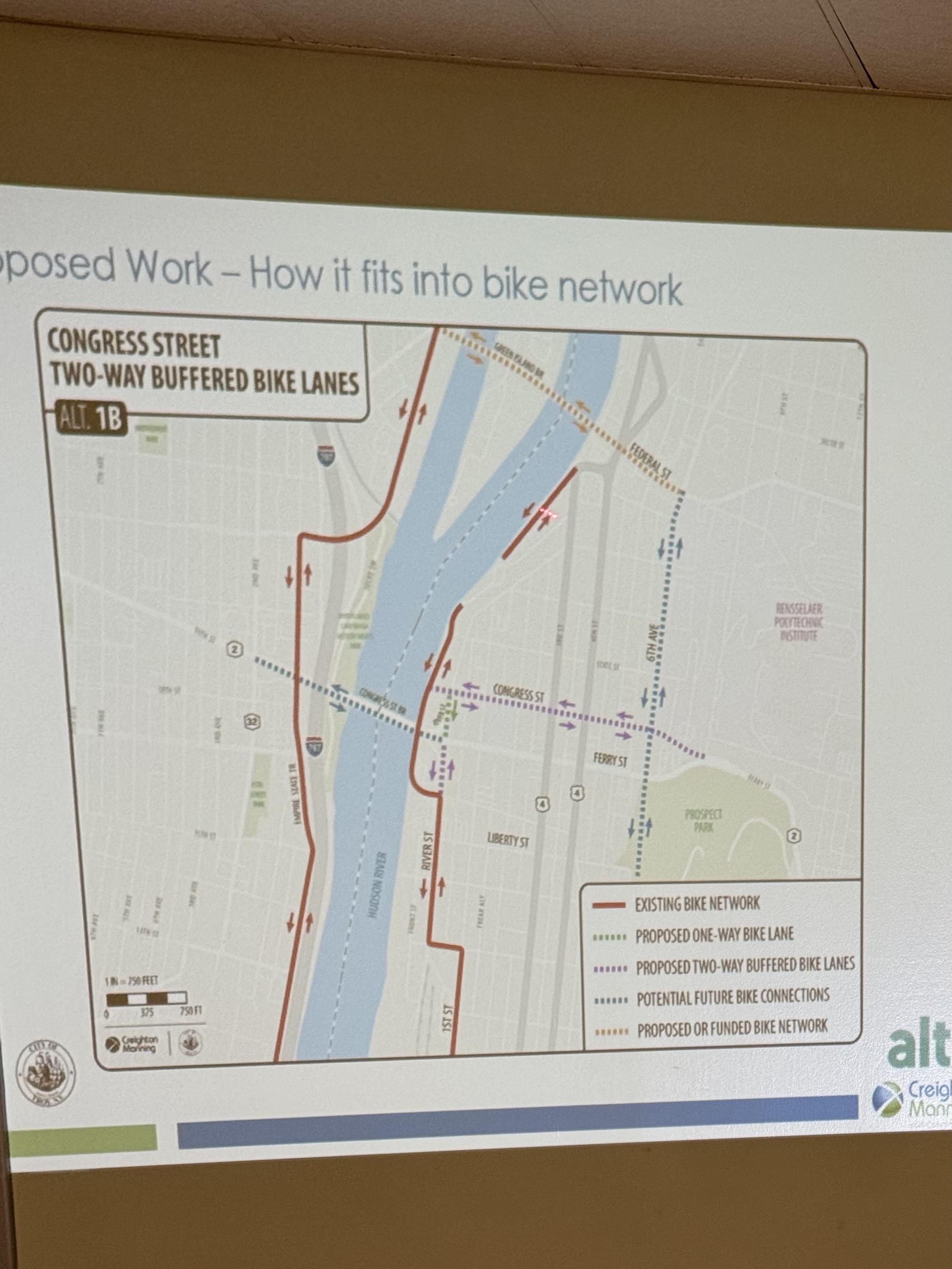 At the meeting, several residents voiced similar hopes, including a family excited to bike safely across the river to Price Chopper and other long-time residents who depend on Congress Street for their daily commutes.